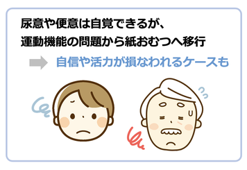 通常の下着から“紙おむつ”への移行する事がありますが、